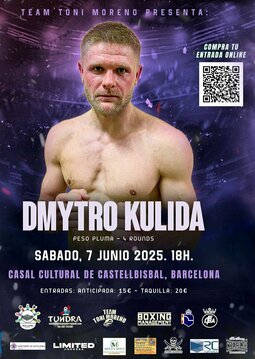 DMYTRO KULIDA integrante Team Toni Moreno - Boxing Management y con mas de 250 combates amateurs disputara su tercer combate en Boxeo profesional en el Casal Cultural i Recreativo de Castellbisbal, sera el sabado 7 de junio 2025 a partir de las 18 horas.